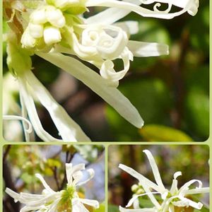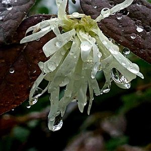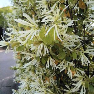 散歩途中で見つけました シロバナトキワマンサク なんとも、不思議な花‼️