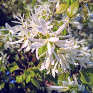 🏷️木漏れ日の木曜日 🏷️白い恋人達 🏷️純白マニア 💟シロバナトキワマンサク💟 「白花常磐万作」🤍 マンサク科・トキワマンサク属 基本種のシロバナは薄い黄色から白色 4枚の長いヒラヒラが風に揺れて 咲いてました🎵 満開の白い花姿は素敵ですよ★*☆♪✨ 花言葉💐 シロバナは『不思議な力』『霊感』 🏷️ウクライナに平和を🇺🇦 🏷️平和を願う🕊️ 🏷️No more war