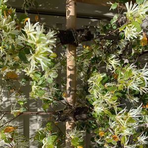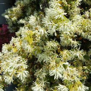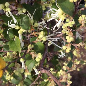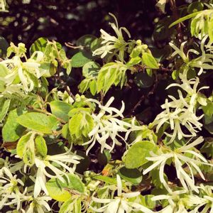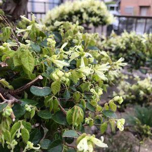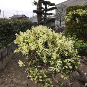 公共施設の目隠し代わりに使われていた木です。 花はマンサクのような花ですが、名前が知りたいです。 よろしくお願いします。