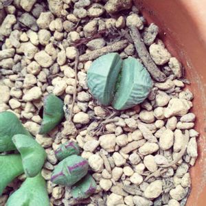 多肉1dayレッスン フクロウの鉢が気になって参加し、とうとう手を出してしまった💦初リトープス🌵 意外と可愛いかも~😍 脱皮する日を楽しみにして 大事に育てます🎵