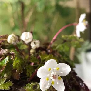 もう1枚 山野草♡.*゜ 梅花オウレン🤍✨ こちらも花弁がヒラヒラと落ちてしまい蕊だけが残っています😅 お花が分かりにくくて🙇🏼♀️ 小花 は🤳が難しいですね(^_^;) このお花 葉っぱも素敵です🌿.*゜