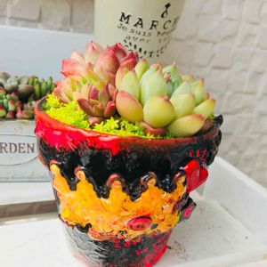 はじめてリメ鉢に寄せ植え☺️🍀 しょうこさん❤︎*。 カワカッコイイ鉢有難う☆。.:*・゜