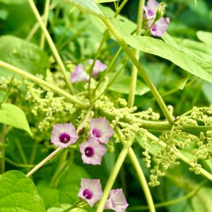 ホシアサガオ 道端でカラムシの茎に絡まって咲いていました。 ホシアサガオ ヒルガオ科サツマイモ属の帰化植物 カラムシ イラクサ科カラムシ属 在来種