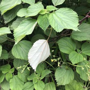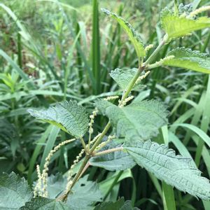 撮影場所:千葉県我孫子市久時家 種名:カラムシ? 小学校のときにプールの近くに生えていたものと多分、同じかな。葉裏は白く全体的に毛がある感じがあり、棘はなさそうです。 根元付近の茎は固そうです。