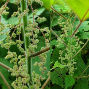 9月3日撮影 河川敷 これはイラクサでしょう!?と思って撮りましたが、調べるとイラクサは葉が対生だそうで これは互生しているのでイラクサじゃないということになりますね。 …ではこれは??? イラクサもヤブマオも葉の鋸歯がわりと大きいのですが、これは整っている感じがしますね。 カラムシでしょうか? 雌雄同株で雌雄異花。 茎の上方から雌花序が、下方に雄花序が出ています。 イラクサ科の植物だと思いますが、種名がわかりません。 教えてくださいー🙏 (11月6日更新) 更新が遅くなってしまいました。 おひさん はまなすさん より、カラムシでよいとコメントをいただきました!!ありがとうございますーーー🤗 カラムシ(苧麻) イラクサ科カラムシ属 植物繊維をとるために栽培されていた アジアの麻ですね!! カラムシ(苧、枲、苎、学名:Boehmeria nivea var. nipononivea)は、イラクサ目イラクサ科の多年生植物。南アジアから日本を含む東アジア地域まで広く分布し、古くから植物繊維をとるために栽培されたため、文献上の別名が多く、紵(お)、苧麻(ちょま)、青苧(あおそ)、山紵(やまお)、真麻(まお)、苧麻(まお)などがある。 (Wikipedia より)
