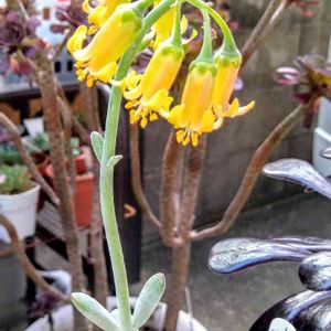 コチレドン属、ふっくら娘🍀。 やっとお花が咲いてました🎶🐾⛱️(*˘︶˘*).。*♡🎉🎊。 葉っぱは、ほとんどぽろりと落ちました😂