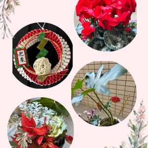 明けましておめでとうございます 皆様、今年もどうぞよろしくお願いいたします😊 我が家の玄関ポーチ…赤いシクラメンは娘が選びました❤️ 立性ローズマリー、3年目でやっと花が咲きました😍