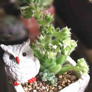 4月も間近なのに雪って…🥶 フクロウ祭りお花の咲いたヒントニーで参加させていただきます🦉 ヒントニーってセダムだからお花咲いたら枯れてしまうのでしょうか???