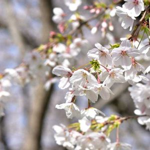 サクラ(桜) 散策で桜を楽しみました。 1枚目 染井吉野 2枚目 苔清水(里桜系) 3枚目 白妙(八重桜) 4枚目 染井吉野と枝垂れ桜 5枚目 染井吉野 染井吉野 母をエドヒガン、父を日本固有種のオオシマザクラの雑種とする自然交雑もしくは人為的な交配で生まれた日本産の栽培品種のサクラ。遺伝子研究の結果、ソメイヨシノは、エドヒガンとオオシマザクラの雑種が交雑してできた単一の樹を始源とする栽培品種のクローンであることが、1995年に明らかにされた。 苔清水 サトザクラの栽培品種。東京の荒川堤で栽培され1916年に三好学が記載、発表した品種です。花弁に切れ込みが見られ淡い紫がかった花色の美しい桜です。 白妙 オオシマザクラ系のサトザクラの園芸品種で、 白色の八重咲きの代表的なサクラです。 花は純白で八重咲き、大輪でたいへん美しく見応えがあります。 (ネットより) 白妙(八重桜)が咲いていたのに驚きました。 他の八重桜はまだ咲いていませんでしたから。