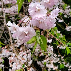 今日は歩いて🚶町役場や用事へ途中☂️がポツリポツリ┐('~`;)┌ 用事を済ませて帰りには☔がピタリと止んだ✌️😄家に帰ると又☔がザーッと雹も降りビックリ❗運を使い果たしたかも~💧 1️⃣2️⃣八重桜(友人より) 3️⃣4️⃣土手の枝垂れ桜1本だけまだ咲いてキレイ🌸 5️⃣お魚.独活・蕨(友人より)毎日贅沢してます😆 ☆穏やかな一日であります様に🙏💚🩷❤️🤍💜💛🩵🧡