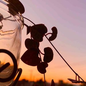 今日の夕焼け綺麗でした まっオレンジで… 先日風の強い日に折れてしまった ハートカズラと 折れたこの子は水にさしとけば 根がでるのかなぁ?