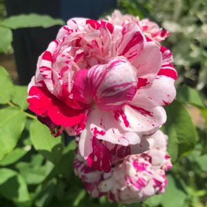 バラのバリエガタ ディ ボローニャさん ダマスクの濃い素敵な香り 花びらも濃いハッキリとしたピンクと白の模様が魅力的な薔薇さんです