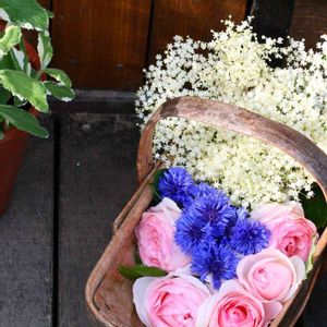 ようやく晴れ間が見えた今日。 ピエールさんどさっと切ったり、コーンフラワーやエルダーフラワー収穫したり。