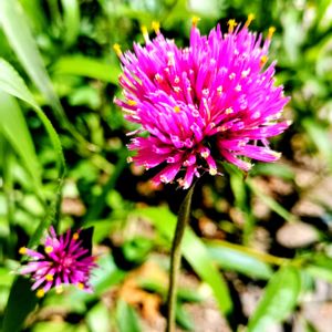 おはようございます🌞 先日自宅のセンニチコウ「ファイヤーワークス」を投稿したんですが、昨日公民館のプランターに植えたお花を見に行って見たら 自宅のよりお花が10倍位大きかった🤯 左下 しょぼいのが 我が家のファイヤーワークス・右のが公民館に植えた同じお花 もう別物だと思う😂 2枚目 公民館で摘んできた(ちゃんとおことわりしてます)ファイヤーワークスを小瓶に沢山さしてキッチンカウンターに置いてみました