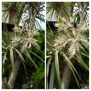 ニオイシュロラン ふと見上げたら、真っ白な花。 香りが強いらしいけど、マスクのせいか、高さの為か、感じず。 備忘録