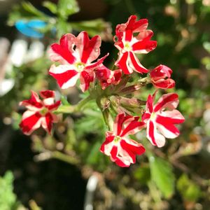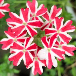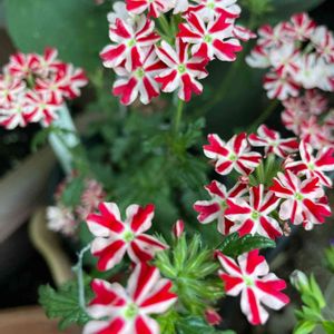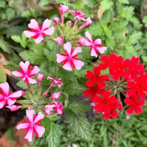 おはようございます😊 少しずつ涼しい朝が増えてきて嬉しい朝です😊 6月に咲いてた四年になるバーベナミータン❤️夏越し出来た様です😆💕 元々は赤いストライプだけどたまに真っ赤になることもありました〜今回みたいに同時に咲いたのは初めてでとってもお得な気分です🥰