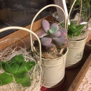 こんにちわ🤗 ひっさしぶりの投稿です❗️ 多肉さんが多くいないので必然的に…😭 数少ない多肉さんですが、個人的には毎日ちょっとの変化に一喜一憂しているんですよ😊 先日、天に召された😭桃美人さんの後に友人から頂いたアメジスティ(チ)ナムをIN❗️ 横がペンデンスとミセバヤ ミセバヤは花屋さんからブチッと頂いて来た子♪ そろそろ根っこ生えたかい? つんつん スポッ! その繰り返しの日々… 私はじっと待てない子だったーーっ😱