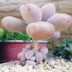 長い間、棒だけになっていたアメジスチヌムにやーっと新芽がでた! 裏側にも同じくらいのピンク色した新芽が!! 待ってたよーー(諦めてたけど😅)