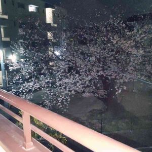 夜桜を眺めながら、ベランダで今夜は家族とBBQ~❕ 自宅前の公園にある桜の木。 明日は雨予報なので、今日が一番見頃だったかも🎵 これを過ぎると、桜吹雪で毎年凄い事になる我が家の庭💦