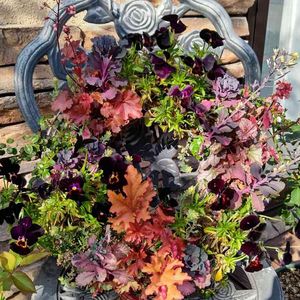 昨年12月に作ったギャザリングリース、葉牡丹は花が伸び、ヒューケラも開花して、随分表情が変わったけど、もう少しこのままで👌