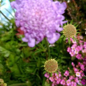 スカビオサとアリッサム咲いてます✨ 今日は、ガーデニング日和ですね👍
