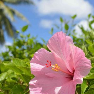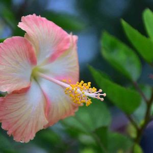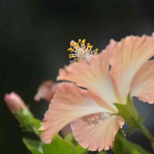 今日のお花、ハイビスカス。🌺 こんなやさしい色も。何色って言ったらいいんでしょうね。今日初めて撮ったので投稿します。小ぶりでかわいらしい花でした。💕