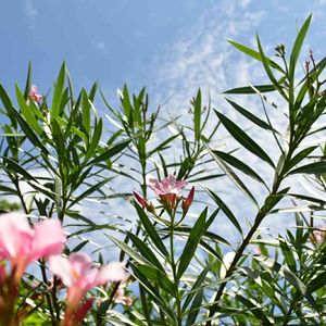 空に届きそう。自由に伸び放題の夾竹桃。ピンク。