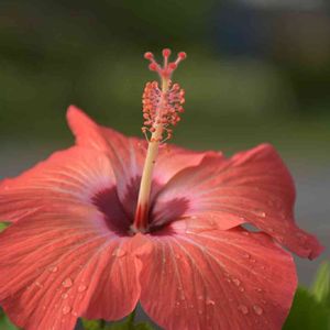雨の朝。サーモンピンクのハイビスカス。🌺