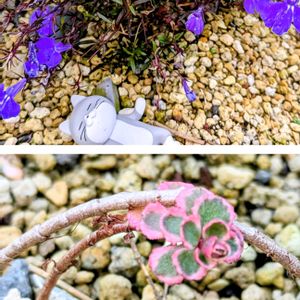 こんにちは〜 台風の進路からはそれていますが、時々ドバーッと雨が降ったり日差しがあったり… 不安定な天気です。 さて、先日も紹介したうちのマジカルキューティーとピンキーですが… 雨ざらしなので、ここ数日の雨で相当モリモリしてきました。 右上ピンキーはかなりモリモリ! お花もたくさん咲いてきました。 この間まで日照不足で、葉のピンク色が消えていたマジカルキューティーも、遮光をやめたらまあまあピンク色が復活してきました!(写真左) 1週間くらい前に、カットして花壇に植えた斑なしマジカルキューティー(右下)にも、もう花が咲いています! 根付くの早すぎ(笑) この子達は本当に夏に強いですね〜。