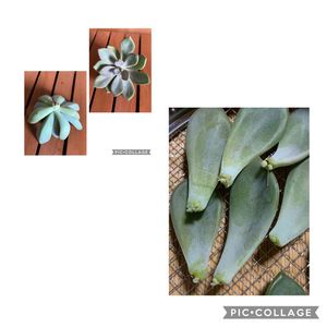 メデューサ様(姫秋麗)、カット後…🤣笑 左が本体🤣 右の3つが、今日の収穫♪🤣笑 葉挿し一つも無駄にしたくないのだけど、 全部植え替えるには場所と時間がどれだけあれば足りるのだろう…😱