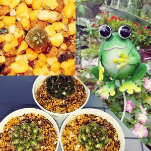 外は雨☔ 日に日に寒くなり、寒さに弱い植物たちをハウスに?入らない😱元々小さいハウス、多肉に占領せれていた😅 兜の種子と言われて蒔いたベビー🌱と麗蛇丸三姉妹🌵末っ子に蕾が、早く咲かないかな🌼