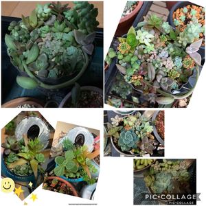 多肉ちゃん〜✨ ちらし寿司みたいな、小さい葉だけを集めたポイポイ鉢、 プスプス挿しただけの鉢、 ちょっと大きい葉のポイポイ鉢… 大きく育ってくれるともっと嬉しい😊💕