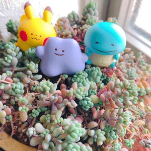 ぷにぷに 鉢から溢れて暴れまくっていたので、大きな鉢に植え替えしました♪ 植え替える前に、次男が並べてくれたポケモンたち…( ´艸`)♡ 次男はメタモン大好きなんです♡