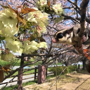 満開のピンクの桜🌸とグリーンの八重桜 とても綺麗でした😊💕