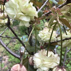4年前に 八重桜と一緒に植え付けた グリーンの八重桜😃決して綺麗とは 言えないけど私はこの渋さが 好きです😆❣️