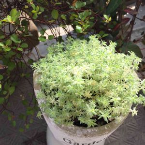 薄い緑色とクリーム色の小さな葉のコントラストに一目惚れ💕 光があたると光って見えてさらに綺麗✨ セダム、欲しかったんだよね〜🤗