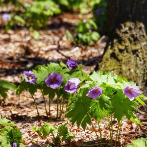 シラネアオイ ポツポツ咲き始めてます 城山カタクリの里にて