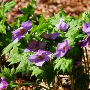 シラネアオイ(白根葵) キンポウゲ科の多年草で深山の林内に生えています😊 花弁は無く淡い紫色の萼弁が美しい😃 日光白根山に多くて花がタチアオイに似ていることから名がつきました😉