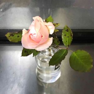 おはようございます。 氷点下の世界。 水道が凍って出ない‼️ 油断していました。 一時パニック🤯 この間カットしたブランピエールさん 台所で咲きそう🌹