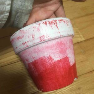 素焼き鉢に色塗ろう。 めでたい感じに紅白だ! って思ってたらグロくなってしまった (´^ω^`)ははは