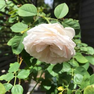 オリビア ローズ オースチン🌹 フェンスを越えてお隣さんに向いて咲いてます😅 うちから見えるのは後ろ姿💦 ソーラーパネル設置のところからだから誰も可愛いところ見てくれないよ~😂 チョイとお邪魔して🎵 まぁ…南向くのは仕方ないんだけどね😅💦 カットして部屋かな🎵