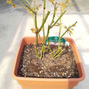 昨日お迎えしましたので今日は早速 鉢ましをしました。 お店の方が、夏剪定が遅かったから~と言われました、やっと新芽が出てます。