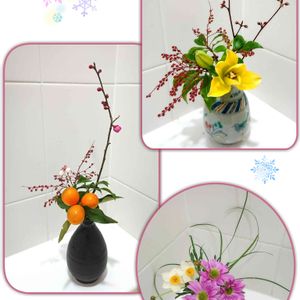 病院の生け花 2 今年も アセビ(紅)を生ける季節になりました🤗🎶 今週は大寒波襲来のため 動けないかもしれないので、日持ちする花材を揃えました。 *スカシユリ アセビ クロモジ *キンカン アセビ 梅 *キク スイセン ジャノヒゲ