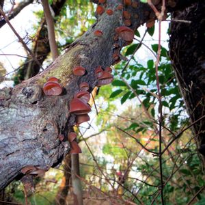 天然のキクラゲです。 細かい種類まではわかりませんでしたが、食べてみたところ売り物よりも食感が非常に良く、とても感動しました。 キクラゲの類似種には毒のあるクロハナビラタケというものがあります。付き方や見た目など、しっかり確認してから食べてください。