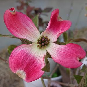 枯れかけたハナミズキが、今年さいたよ。コロナでも花は元気に力強く咲くよね。おうちにいても、ポジティブにいかないと。