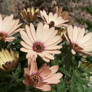 オステオスペルマム三姉妹🌿 ← アキラ 花びらの裏がブラウン❕ ↗️ホワイトパープルアイ 真っ白でステキ❕ ↘️パティエ 花がクリーム色からピンク色に変化する事が解りました🎵 yuyuさんの 🏷️金曜日の蕾たち 🏷️花咲く乙女たち♡に参加します