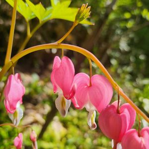 鯛釣草🌿🎣 小さな苗に花が咲きました✨ 魚がぶら下がっているようにも見えたり❣️ハートのイヤリングにも見え楽しくなります🎶 右上から開いていく様子です🌿