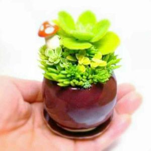 セダムとミニミニきのこ♪ きのこは手作り陶器。 もちろん鉢もです。