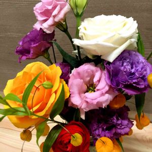 お気に入りのごはん屋さんで見つけました。お知り合いにフラワー関係の方がいるとのことで、いつもディスプレイが楽しみなのです。