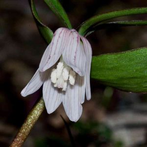 2023/3/5撮影 ホソバナコバイモ 1週間後、自生地再訪。 蕊の葯が白色を確認。 この後、更に花弁は開きます。 自分にとっては、初めての花。やはり嬉しいですね♪♪♪